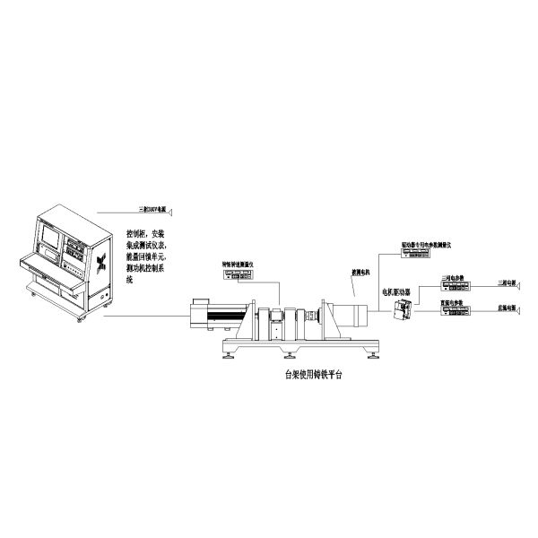 2.測試原理:測試過程中,電機(jī)啟動后帶動電力測功機(jī)旋轉(zhuǎn),通過計(jì)算機(jī)給電力測功機(jī)程控加載,同時(shí)電腦上自動記錄數(shù)據(jù),加載過程中記錄每個點(diǎn)的數(shù)據(jù),待所有數(shù)據(jù)記錄后,生成報(bào)表和曲線。